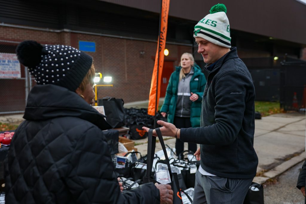Thanks to the generosity of our donors, members of the Snider community distributed more than 250 turkeys and Thanksgiving dinner items to Philadelphia families who need it most. With each meal large enough to feed a family of six, over 1,500 total individuals were impacted by the giveaway. In total, 136 donors contributed over $12,800 to support the meal giveaway at Laura Sims Skate House.